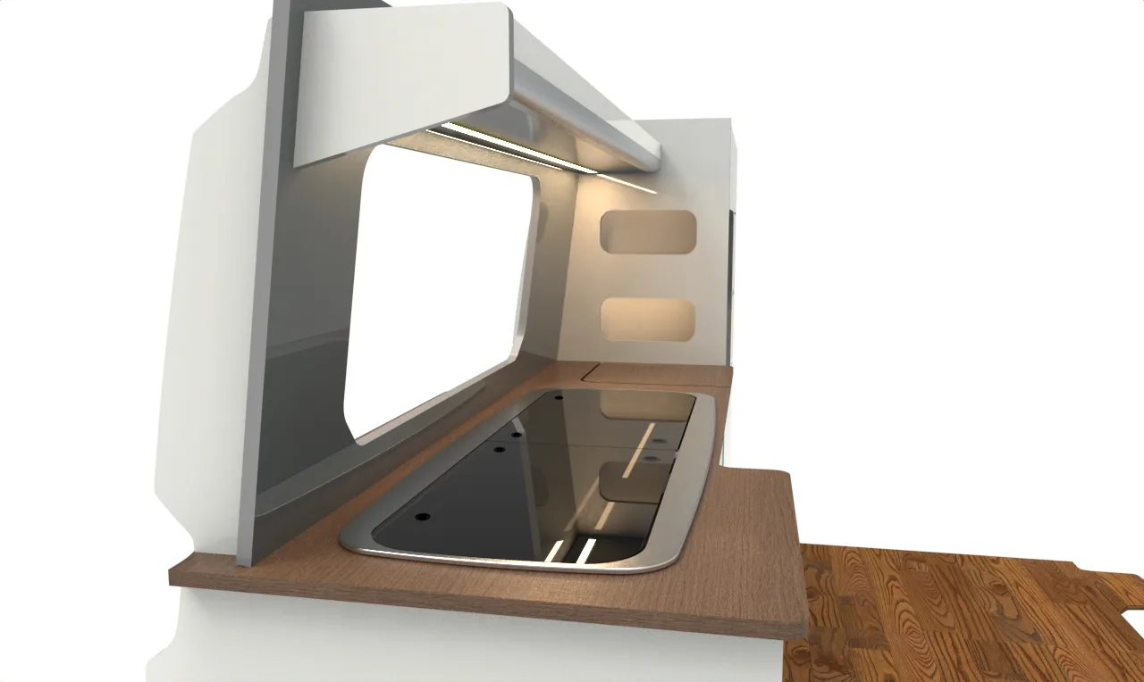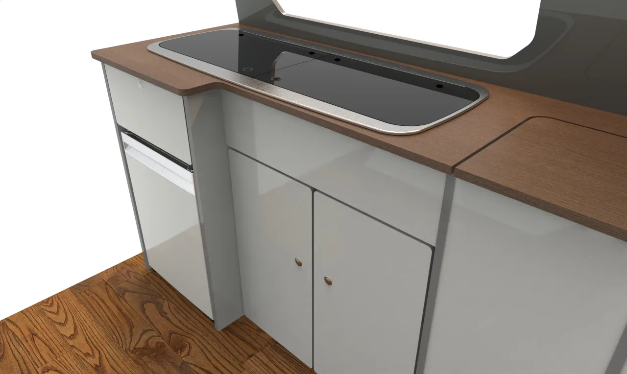 SWB Side Units offers versatile storage with a drawer, table system, designed to work seamlessly with low or pop-top roofs. It includes push-button latches, and durable knock-on edge trim. It is compatible with 112cm rock and roll beds.
