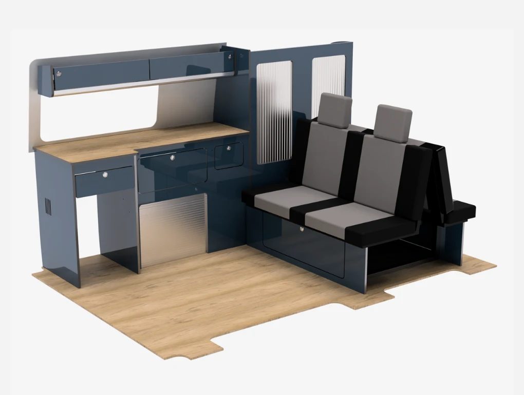 All our kits are available in either flatpack or pre-assembled form. Both Flatpack campervan furniture and pre-assembled furniture can be delivered to your door or collected from our Lowestoft showroom.